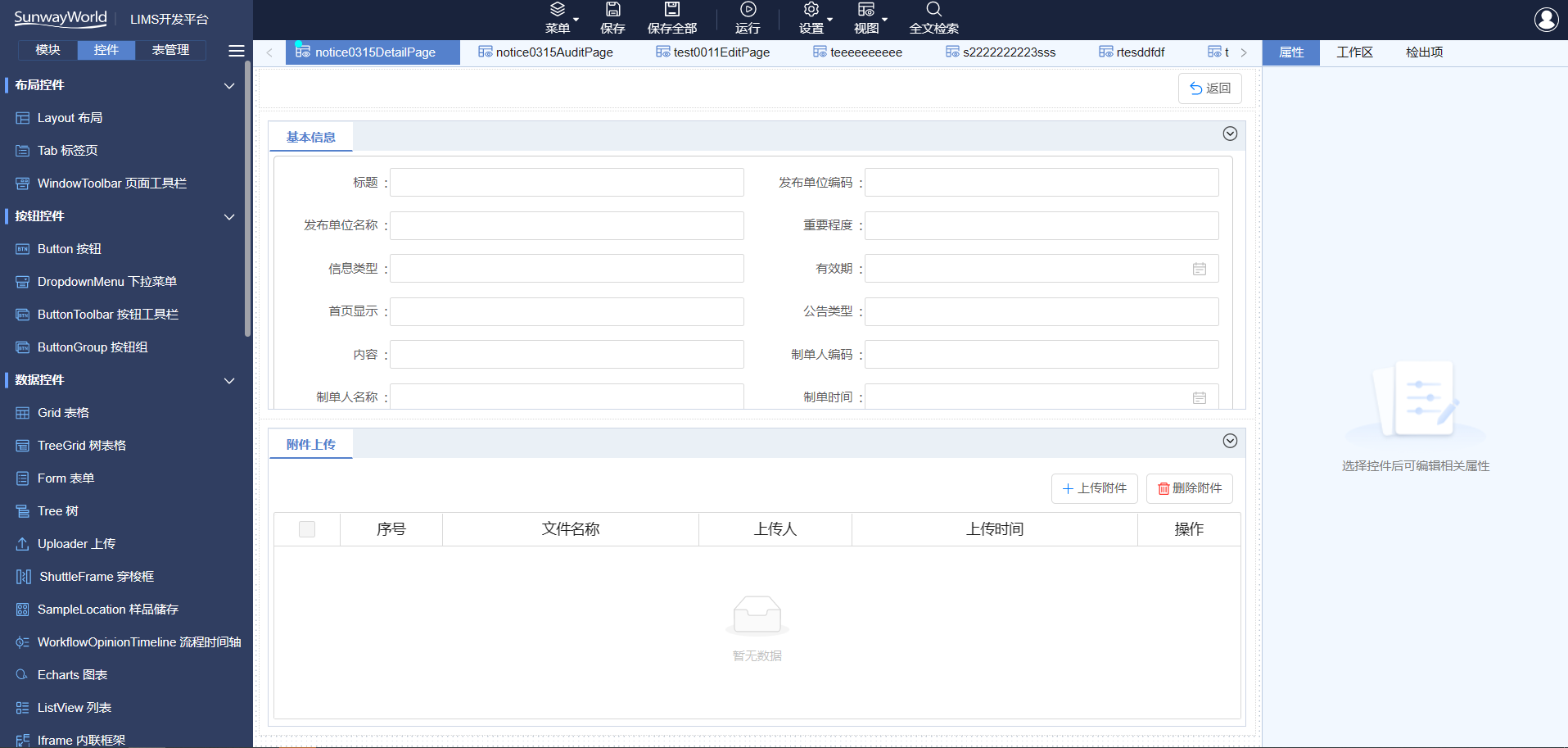平臺內(nèi)置LIMS產(chǎn)品的所有界面控件,分為布局控件、按鈕控件、數(shù)據(jù)控件、輸入控件、導航控件等,通過拖拽方式即可繪制出界面,方便項目實施,客戶后續(xù)可自行維護,方便快捷。
