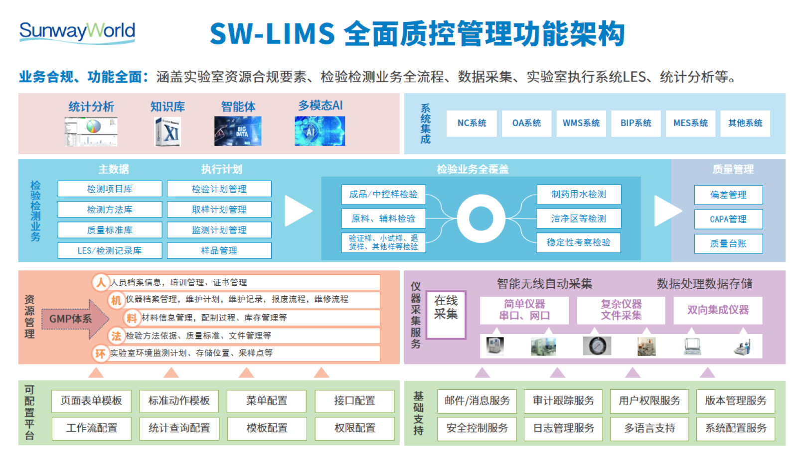 研發(fā)一體化平臺(tái)包含了:研發(fā)產(chǎn)品生命周期管理系統(tǒng)(PLM)、科研項(xiàng)目管理系統(tǒng)(RDMS)、科研過程記錄管理(ELN/LES)、臨床前研究合規(guī)系統(tǒng)(GLP)、臨床研究管理系統(tǒng)(GCP)、質(zhì)控實(shí)驗(yàn)室信息管理系統(tǒng)(LIMS)、科學(xué)數(shù)據(jù)管理系統(tǒng)(SDMS)、質(zhì)量管理系統(tǒng)、AI應(yīng)用平臺(tái)(SunwayLink)等。以下是主要軟件功能簡介: