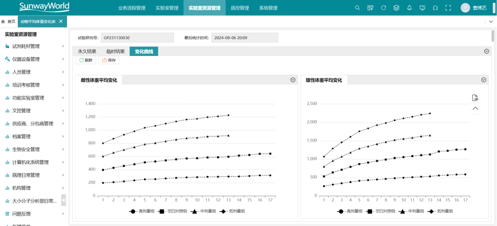 GLP系統(tǒng)聚焦毒理學(xué)、藥代動(dòng)力學(xué)、藥效學(xué)等臨床前研究流程的管理,支持試驗(yàn)設(shè)計(jì)、動(dòng)物分組、劑量設(shè)置、給藥記錄、稱重觀察等全過程數(shù)據(jù)采集。系統(tǒng)可自動(dòng)采集動(dòng)物體重、攝食、給水等信息,支持項(xiàng)目分層管理與權(quán)限控制。動(dòng)物信息、籠位記錄、用藥批次可追溯到單體,滿足GLP實(shí)驗(yàn)數(shù)據(jù)可追溯、可驗(yàn)證的核心要求。與SDMS和ELN集成后,實(shí)現(xiàn)數(shù)據(jù)的集中管理、報(bào)告生成與GLP合規(guī)審計(jì)的閉環(huán),提高藥物臨床前研究的科學(xué)性與合規(guī)能力。