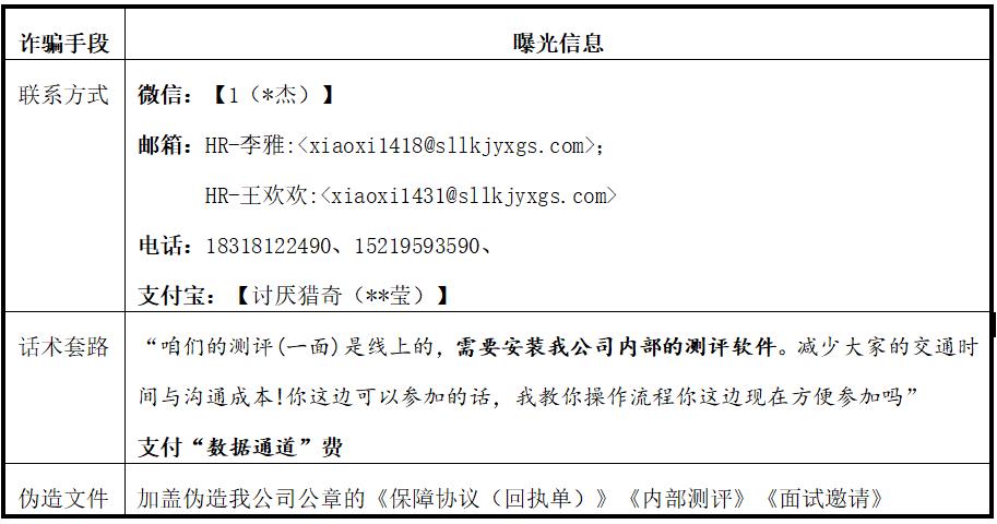 根據(jù)我公司收到的多起舉報及調(diào)查取證,現(xiàn)將詐騙分子的主要作案手段、聯(lián)系方式及相關(guān)偽造文件予以曝光,提醒公眾識別防范:
