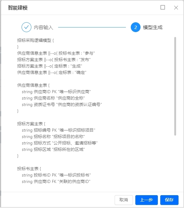 數(shù)據(jù)建模智能體核心邏輯在于“語義理解 + 自動化生成”,NLP 技術(shù)能深度解析業(yè)務(wù)需求的自然語言描述(如 “以供應(yīng)商信息為基礎(chǔ)構(gòu)建招投標(biāo)的業(yè)務(wù)模型”),提取關(guān)鍵實體(招標(biāo)方案、項目方、供應(yīng)商)、屬性(投標(biāo)類型、投標(biāo)價、時間)與關(guān)系(招標(biāo)項目——供應(yīng)商的歸屬關(guān)系);