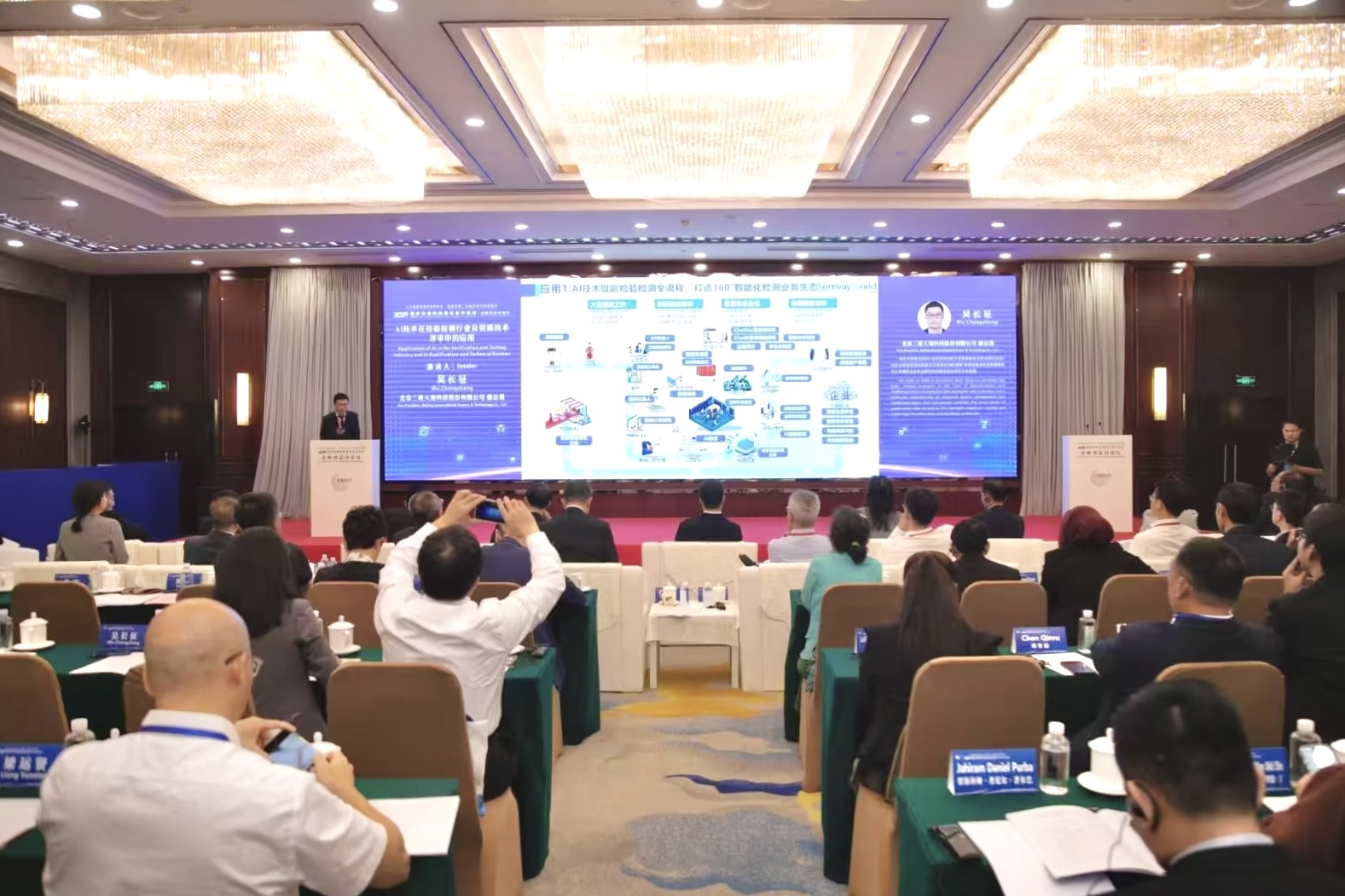 在“合格評(píng)定”分論壇上,三維天地副總裁吳長(zhǎng)征發(fā)表了題為《AI技術(shù)在檢驗(yàn)檢測(cè)行業(yè)及資質(zhì)技術(shù)評(píng)審中的應(yīng)用》的主題演講。